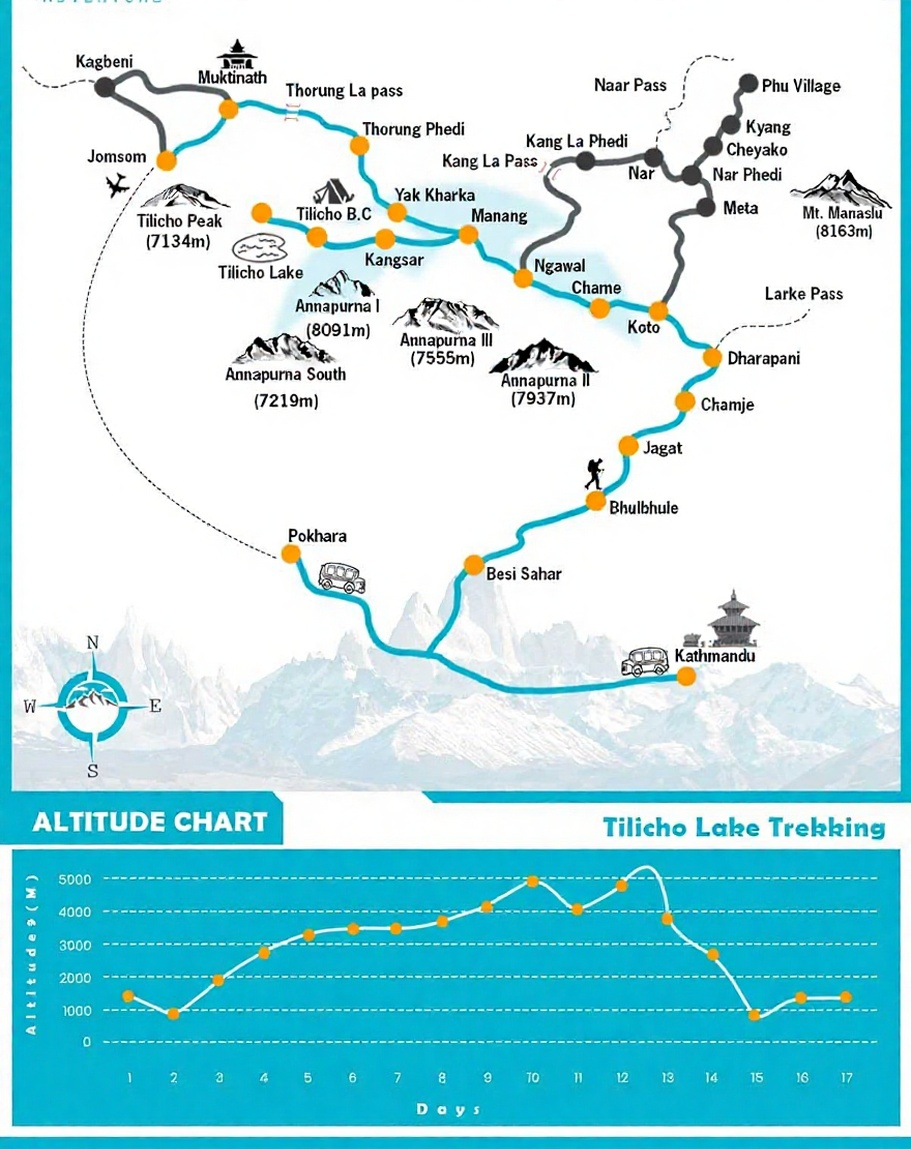 The journey includes trekking along the Khumbu Glacier, crossing high passes, and exploring the serene Gokyo Valley with its turquoise lakes. A highlight is the sunrise hike to Gokyo Ri (5,365m) and the climb to Kala Patthar (5,545m) for unforgettable views of Everest.