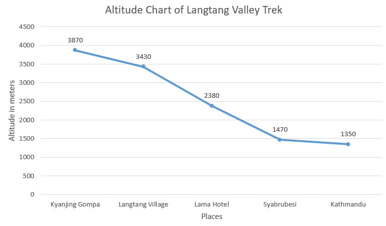 The trek reaches its highest points at Kyanjin Gompa (3,870 m) and optional side hikes to Kyanjin Ri (≈4,773 m) or Tserko Ri (≈4,984 m), offering panoramic views of the Langtang, Ganesh Himal, and Jugal Himal ranges.
