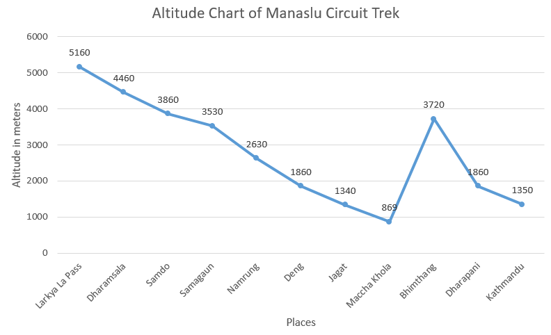 The trek typically takes 14–16 days, starting from Kathmandu, with scenic drives, gradual acclimatization, and stunning mountain views along the way. Trekkers pass through villages like Jagat, Deng, Namrung, Sama Gaun, Samdo, and Bhimtang, experiencing local culture, Tibetan-style monasteries, and pristine natural beauty.