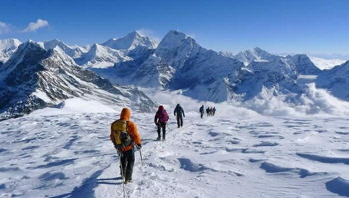 The trip begins in Kathmandu, Nepal’s bustling capital, where you are welcomed and given a detailed briefing about the trek. From here, a scenic jeep drive takes you to Phaplu, avoiding the busy Lukla trail at the start. The trek gradually ascends through charming Sherpa settlements such as Nunthala, Khari Khola, and Panggom, where terraced farms, monasteries, and colorful prayer flags create a rich cultural atmosphere. As the route continues, the trail enters the less-traveled Hinku Valley, passing through dense rhododendron and oak forests alive with birdlife, and eventually opening into alpine landscapes of pastures, glaciers, and towering peaks. The middle section of the trek takes you through Thangnak and Khare, higher villages where acclimatization is crucial. Here, trekkers spend extra days hiking nearby ridges to prepare for altitude and receive climbing training from experienced guides