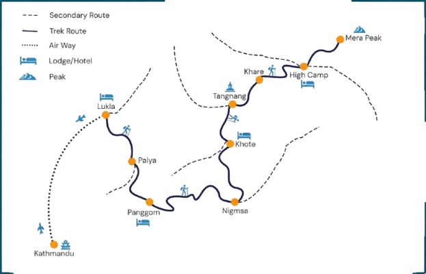 • Summit Mera Peak (6,476m), the highest trekking peak in Nepal.